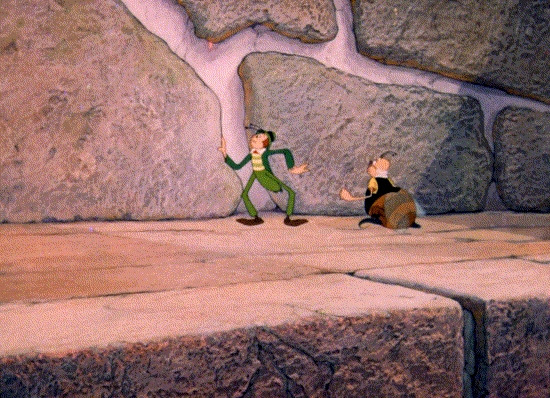 Max’s review of Mr. Bug’s script problems got a curt response from Dave, who pretty much ignored his brother’s suggestions. Other crewmembers did their best: sequence directors were important to the film, and there’s strong animation in many scenes. Al Eugster, a Snow White artist, did lots of wonderful drawing for the dance between the villain’s two henchmen, for example.