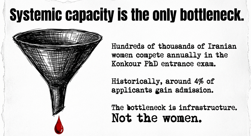 Hundreds of thousands of Iranian women compete annually in the Konkour PhD entrance exam.