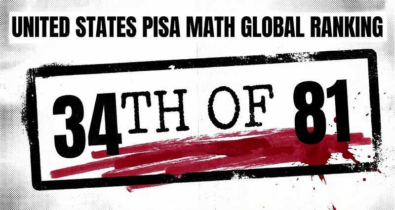 The United States ranks 34th globally in mathematics among 81 countries in the 2022 PISA assessment.