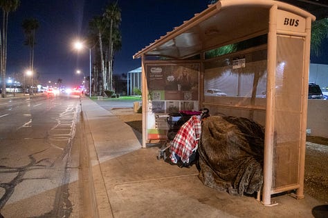 I’ve been very careful up to now not to use the word homeless, because it’s become an overly broad category that covers families in motels with Section 8 vouchers, people sleeping on friends’ couches until they can get back on their feet, mothers with children in long-term shelters, and then those who live in tents under bridges or sleep in a soiled sleeping bag.